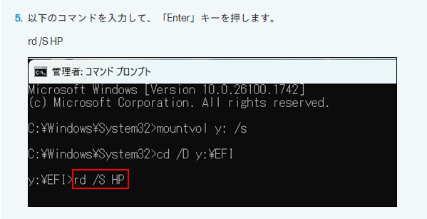 EFIパーティション領域をマウントしてファイルを削除するのですね